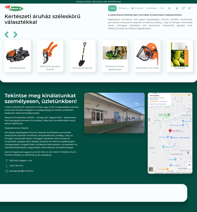 Kertészeti webáruházat készítettünk a Pécsi AGROKER Kft. számára.